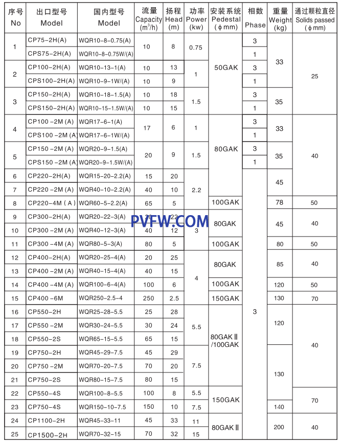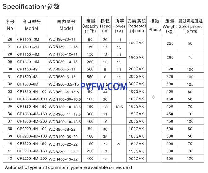 CP、CPS Submersible Sewage Pump are designed for economical and reliable pumping of sewage water from commercials communal and industrial sources,